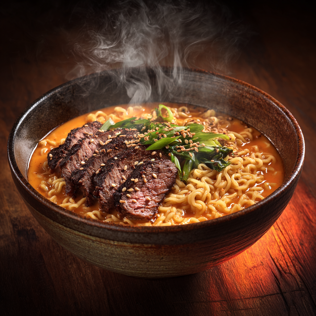Ramen Coréen Épicé au Bœuf Grillé et Sauce Crémeuse
